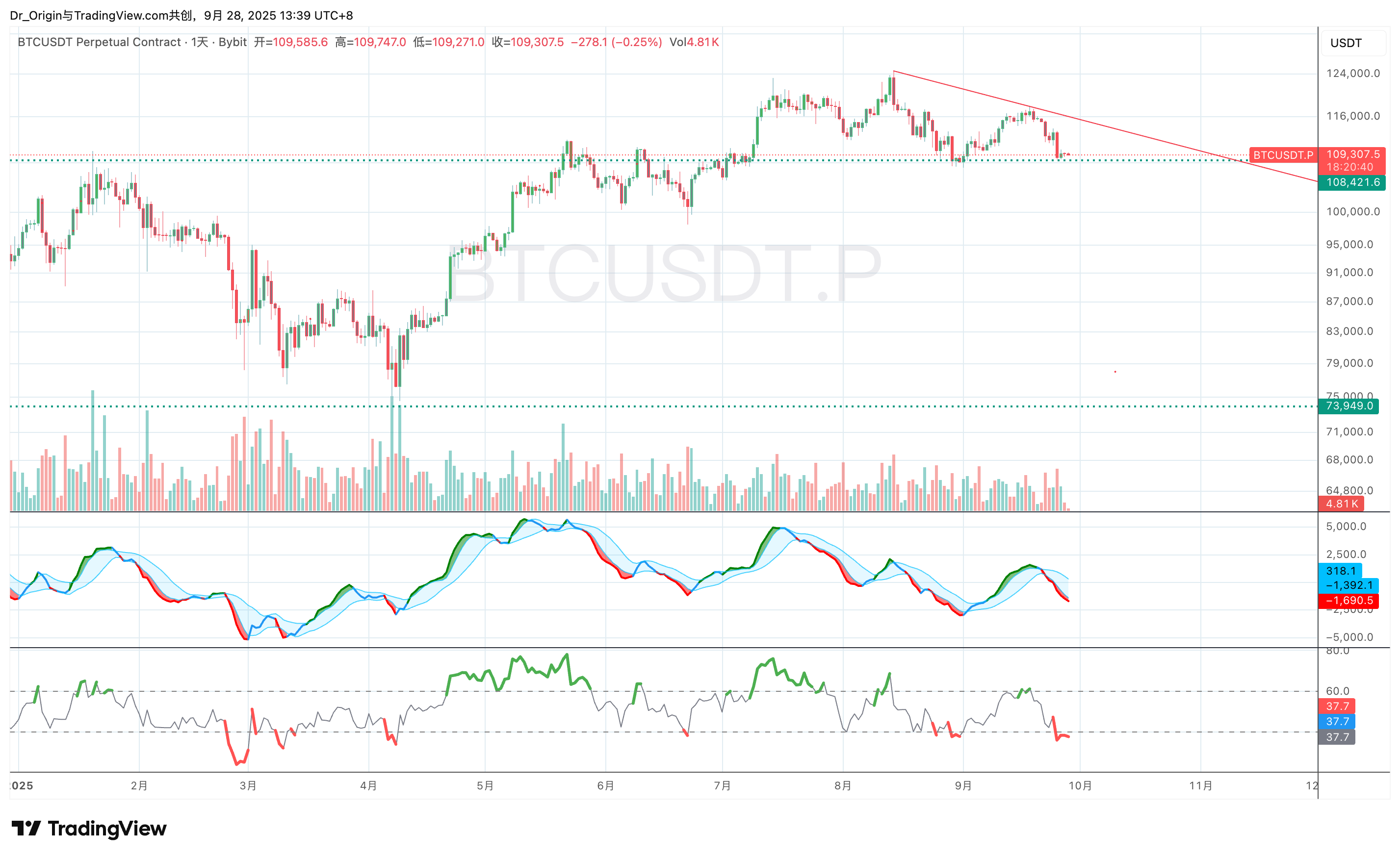 最新的K线图为这一预判提供了无可辩驳的证据。价格在反弹无力后,最终决定性地跌破了我们在9月9日报告中识别的、并在整个FOMC战役中作为多头核心防线的110,000-111,000 USDT 支撑带。这一破位并非意外,而是我们分析逻辑链条中的最后一环。它标志着由宏观预期驱动的短期博弈的彻底结束,以及市场叙事重归长期结构性现实的开始。