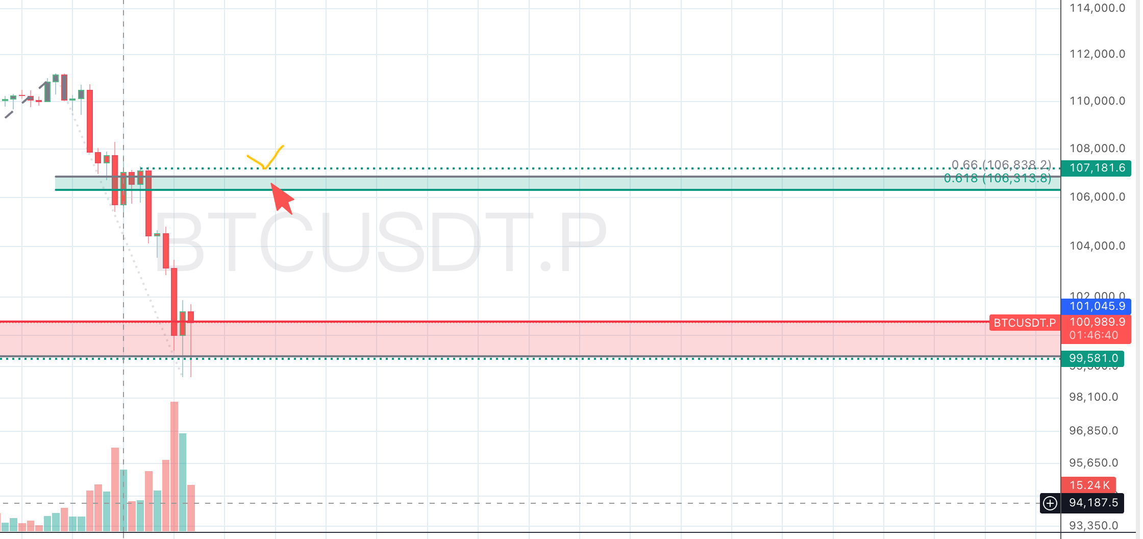 - 流动性池: 它是大量“追空”空头(即在$103,500破位时恐慌性进场)的最显眼、最合乎逻辑的止损订单放置区。