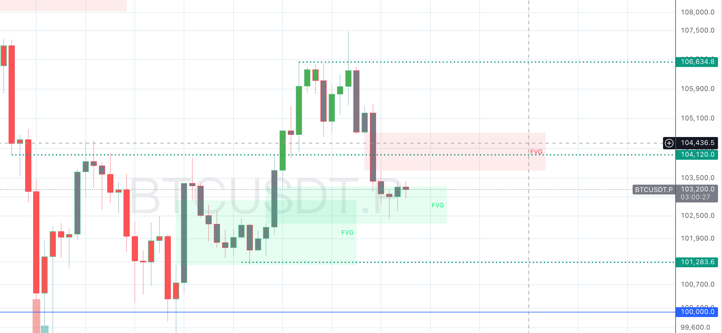 因此,我们的建议是:在$104,000的陷阱区做空,并预期价格不会到达$107,000上方。