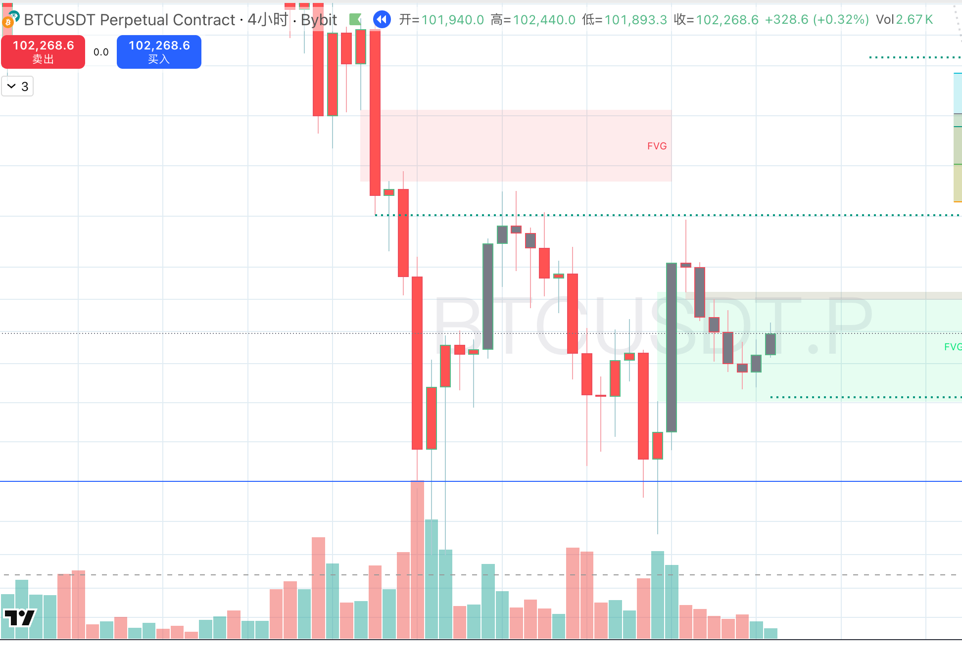 - 陷阱 我们预测,由于市场处于终极弱势,主力甚至无力推动价格到达$107,000的诱饵区。他们将再次抢跑,在$104,000的陷阱区(一个由4H FVG和0.618回撤位构成的阻力区)提前派发。